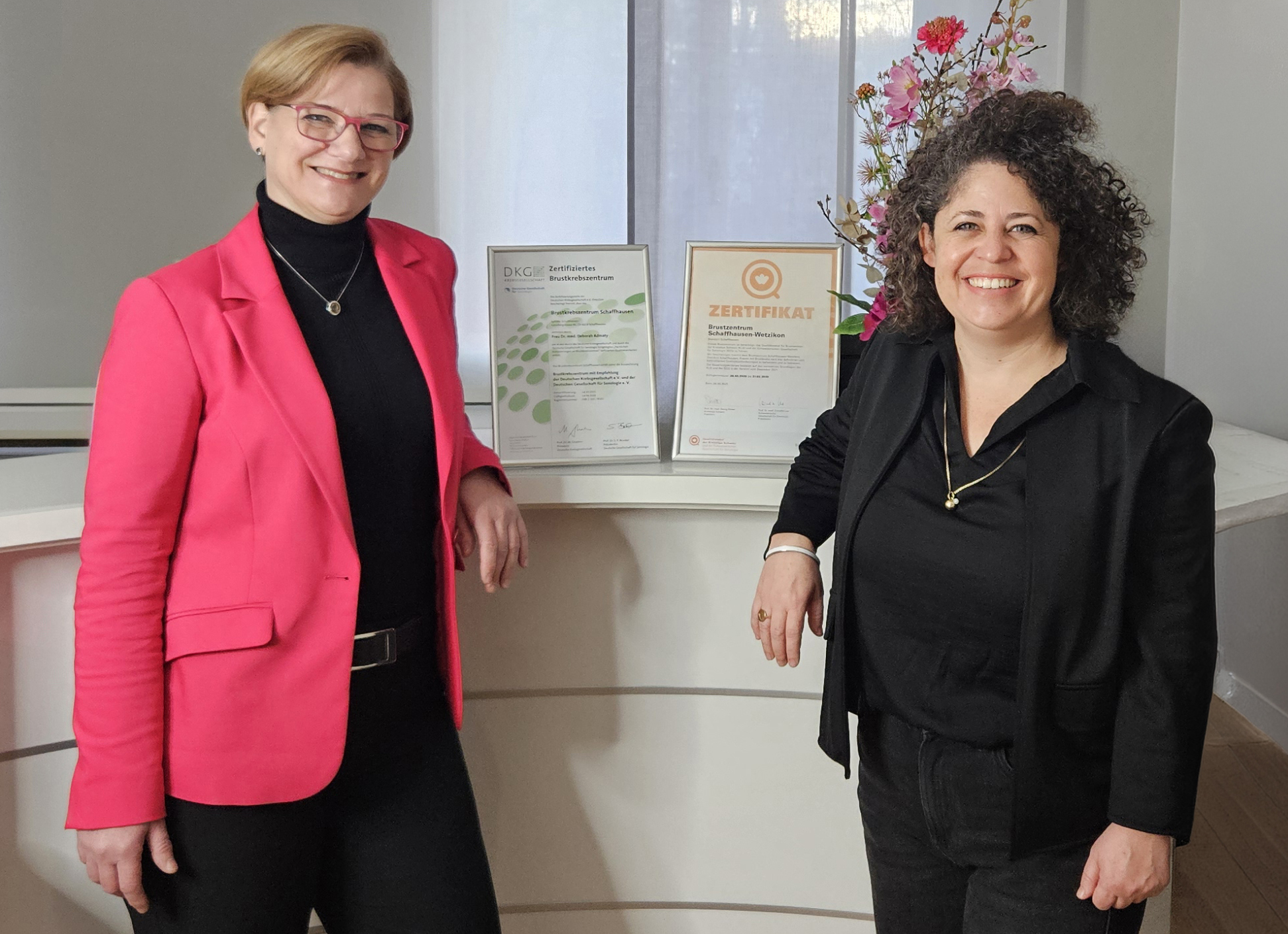 Das Brustzentrum Schaffhausen ist nicht nur mit dem DKG-Zertifikat ausgezeichnet, sondern hat gemeinsam mit Wetzikon die Rezertifizierung der Krebsliga Schweiz erfolgreich bestanden. Damit erfüllt das Brustzentrum nun sowohl die Schweizer als auch die deutschen Standards in der Brustkrebsdiagnostik und -behandlung. «Diese doppelte Zertifizierung unterstreicht die herausragende Qualität des Brustzentrums Schaffhausen und garantiert unseren Patientinnen eine Behandlung auf höchstem interdisziplinärem Niveau – von der Diagnostik bis zur Nachsorge.», fasst Dr. med. Deborah Admaty, Leiterin des Brustzentrums, zusammen.